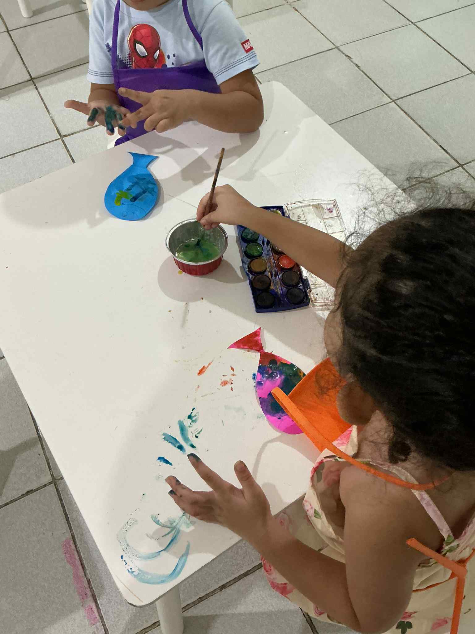 This is a creative, expressive time where children use various art materials (paper, paints, clay, markers, glue, natural materials, etc.) to make something.